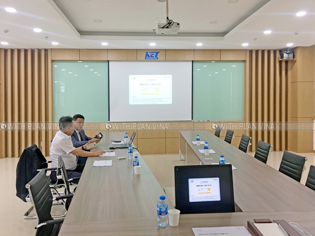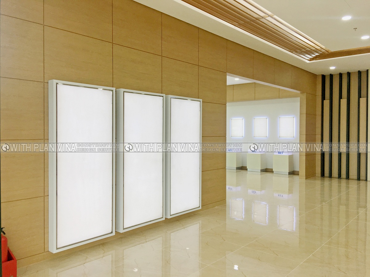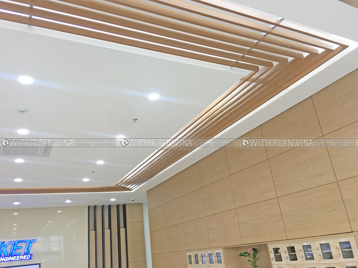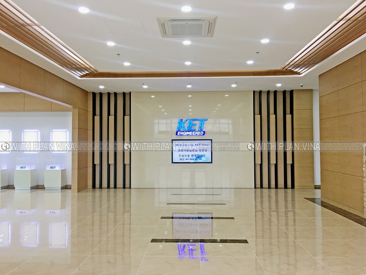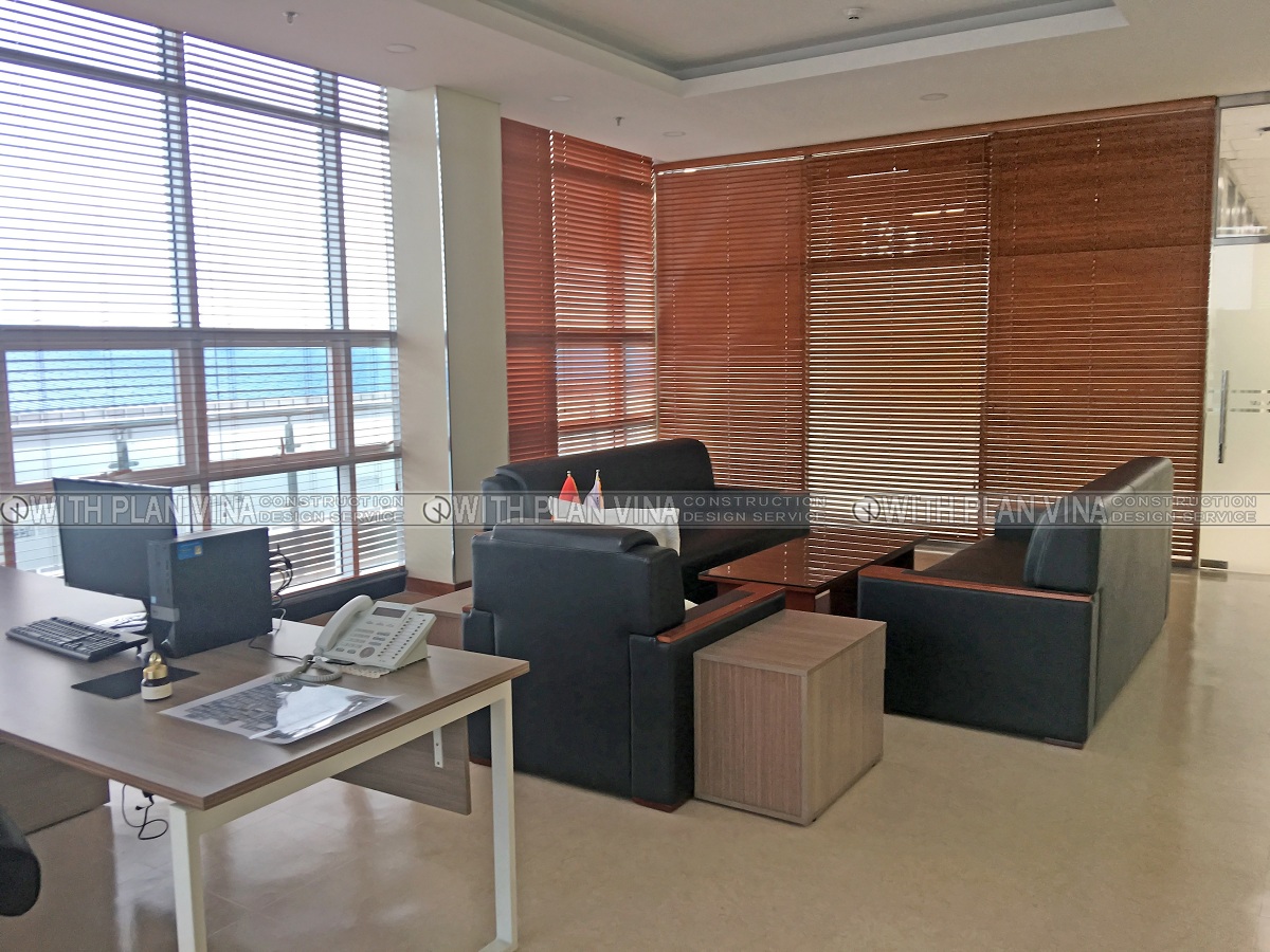 We designed office space with polite, elegant and equally luxurious style. Around the workplace are many ornamental plants, bringing comfort and cool to the office area.The shoe cabinets are designed with many separate compartments and are attached to the glass panels, creating neat, clean and easy to use when people come here to work.